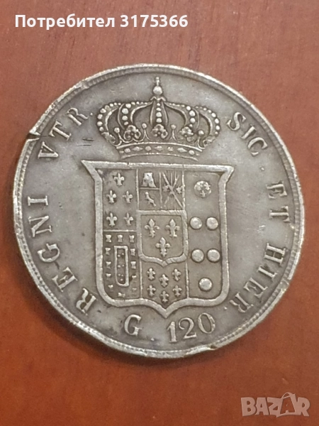 120 грани 1857 Фердинанд Царство на двете Сицилия рядка сребърна монета → Обява 52424840