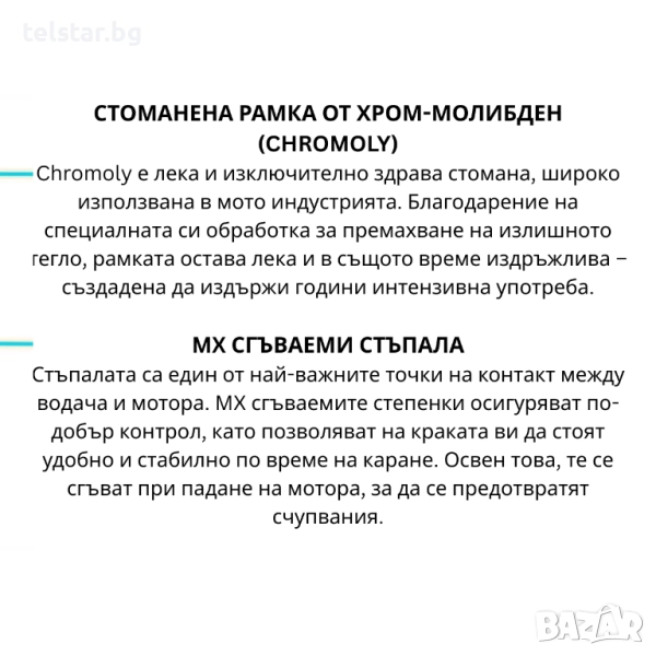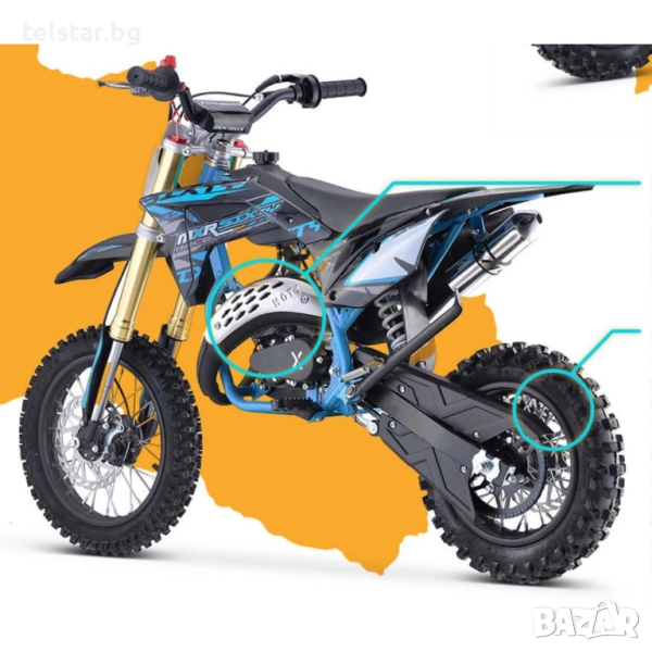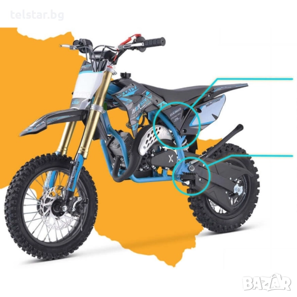 - Два пъти по-силен от стандартните 49cc мотори. Достатъчно мощен да тегли и възрастен, подходящ за следваща стъпка към истински кросов мотор.