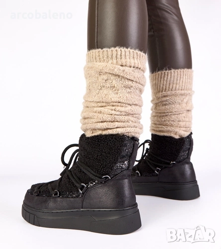 Дамски снежни боти с брокат и подплата от кожа Esmee