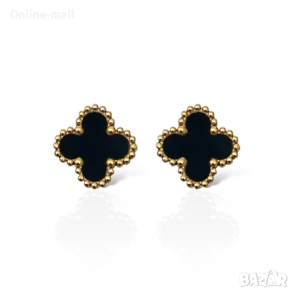 Изисканите обеци с форма на детелини в черен и бял вариант със златен обков са вдъхновени от вечната елегантност на дизайна Van Cleef. Те съчетават финес и модерна визия, подходящи за всяка дама, която обича да изразява своя стил чрез деликатни, но забележими бижута.