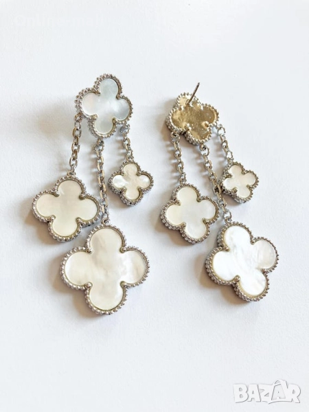 Елегантни дамски обеци с бели детелини, които впечатляват с изискан и модерен дизайн.
