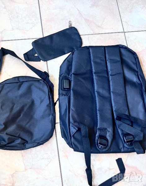 Продавам чисто нов комплект от три части в стилен черен цвят. Подходящ за училище, пътувания или ежедневна употреба.