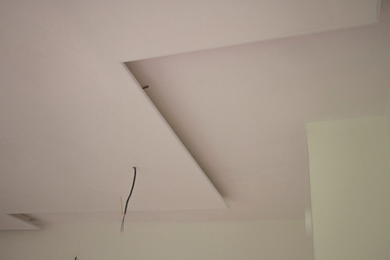 - Окачен таван в банята с вата и заготовки за лунички.