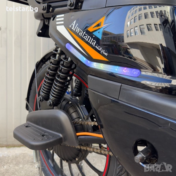 - Луксозна окомплектовка: мигачи със звукова сигнализация - Дигитален LCD дисплей с 5 параметъра - Сгъваеми степенки - Облегалка задната седалка - три скорости - предна и задна спирачка - големи балонни OFFROAD гуми - мигачи - стоп - багажно джобче на рамката - LED светлини на рамката - верига и педали - предни - задни амортисьори с голям ход - мощен LED преден фар - удобни кожени предна и задна седалка с облегалка - задната седалка се превръща в карго отделение за багаж - клаксон - зарядно устройство специално за батерията *При закупуване- ПОДАРЪК: огледала за задно виждане (2бр.) дистанционно с аларама (2бр.) метална кошница за пазар с капак
