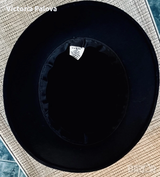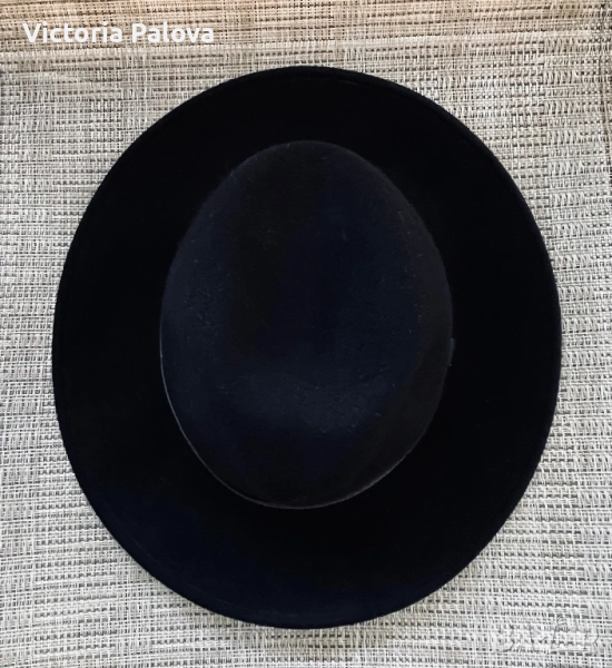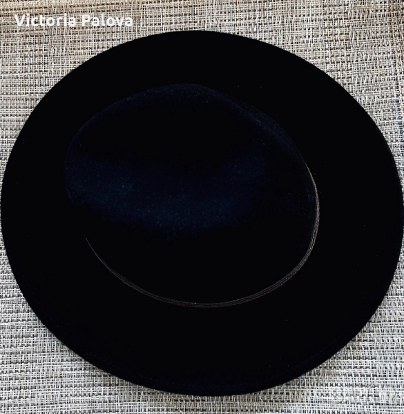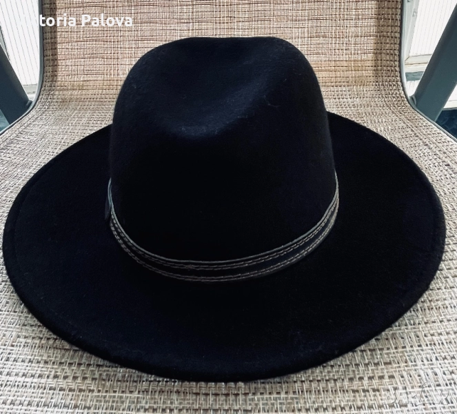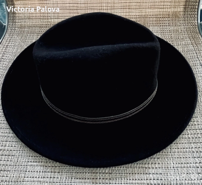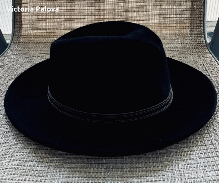 Черна вълнена шапка FEDORA - класическа, 100% вълна, 59 размер