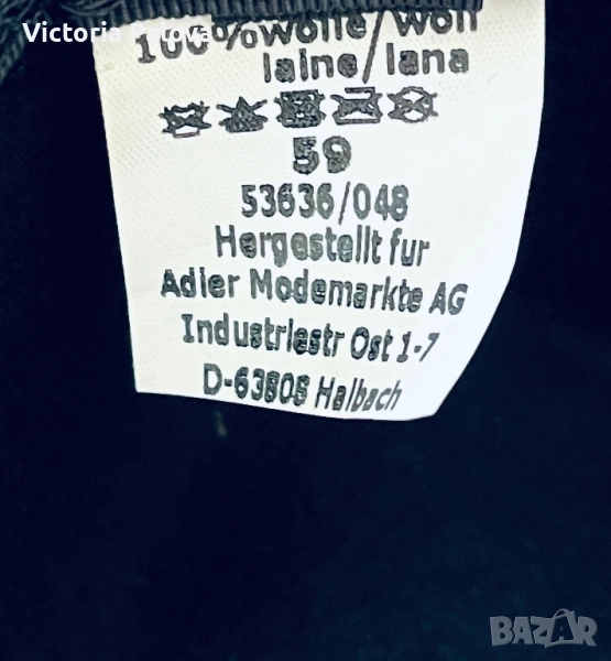 Елегантна черна вълнена шапка тип Fedora, изработена от 100% висококачествен вълнен филц. Моделът е класически, със стилна широка периферия и декоративна лента с контрастен шев, което ѝ придава изчистен и много изискан вид. Размер 59 - стои стабилно и оформя красиво лицето. Шапката е изработена за ADLER MODEMÄRKTE, което е гаранция за добри материали и надеждно качество. Подходяща е както за ежедневие, така и както акцент към елегантна визия. Носи се леко, топла е и е перфектна за есен/зима.