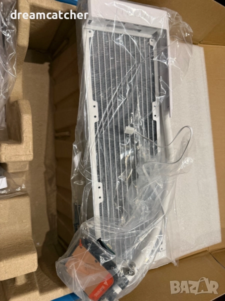 Чисто нов, с всички аксесоари дори болтове и снадки за вентилатори. Може да се монтират както Lian Li така и всякакви други 120мм вентилатори които предпочитате. Идва без вентилатори. Това e Fanless версията