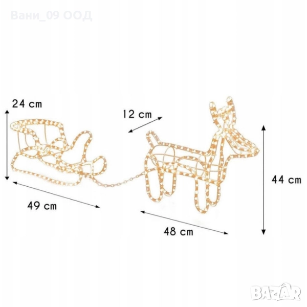 LED Коледни фигури елен и шейна, състоящи се от 324 броя светещи лампички.