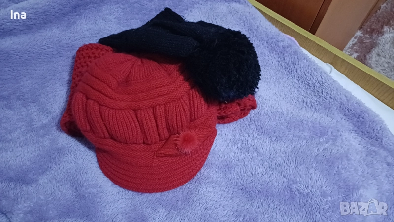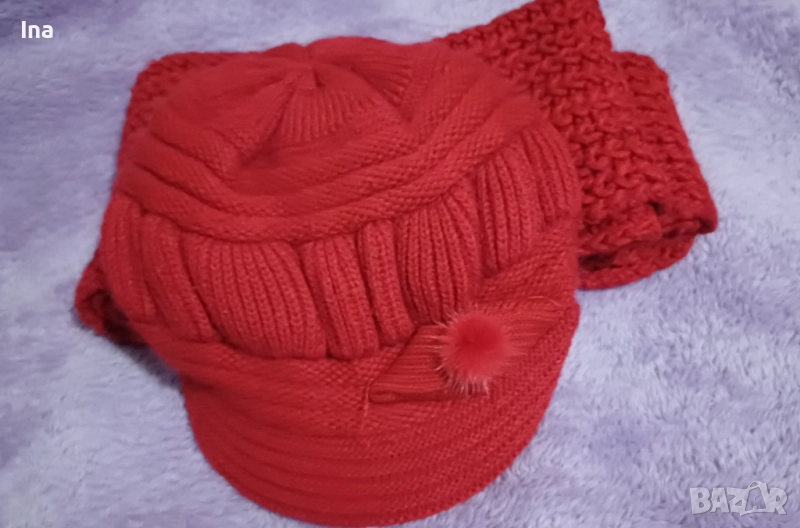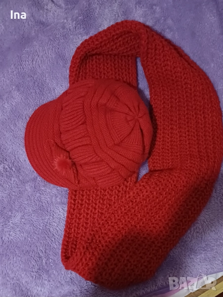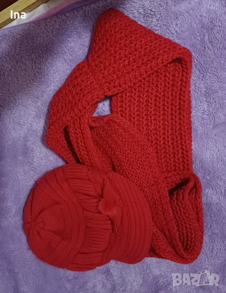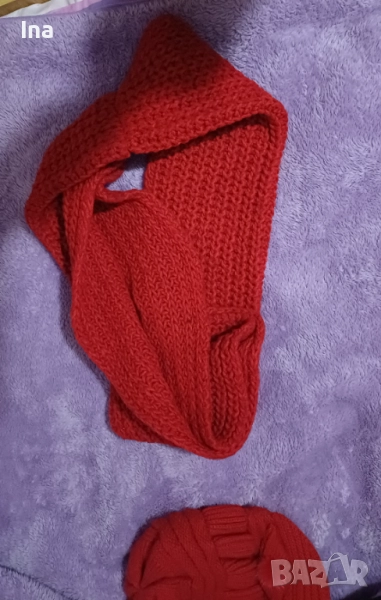 Топли шал и баретка червени → Обява 52427642