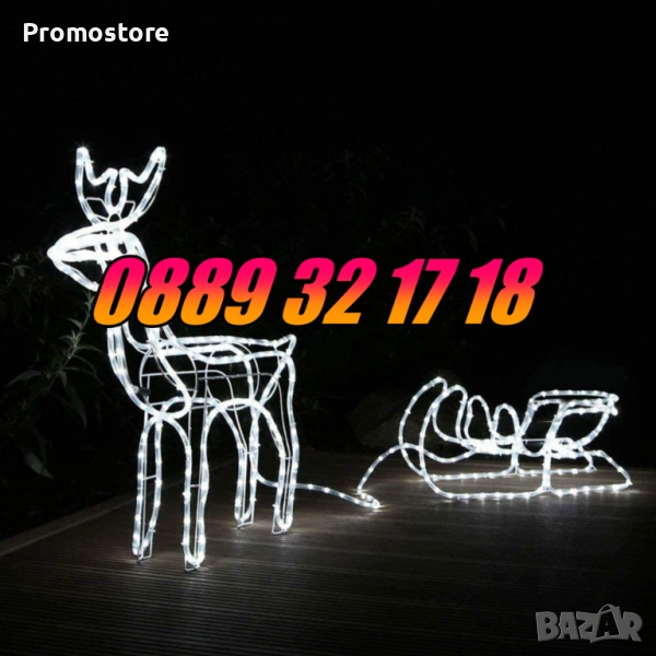 Коледен елен с шейна студено бяла светлина, светещ елен,коледна украса