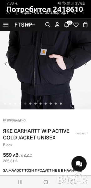 Carhartt Wip Active Cold Jacket Unisex Size S / М НОВО! ОРИГИНАЛ!