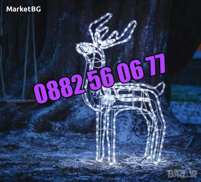 Светещият елен създава коледна атмосфера, където и да го поставите - до елхата, в градината или на балкона. Благодарение на високата степен на покритие, елените могат да бъдат поставени почти навсякъде. Светещият елен ще озари красиво интериора Ви, но можете да го поставите и на терасата или градината. Еленът е покрит със светещ кабел с студено бели светодиоди