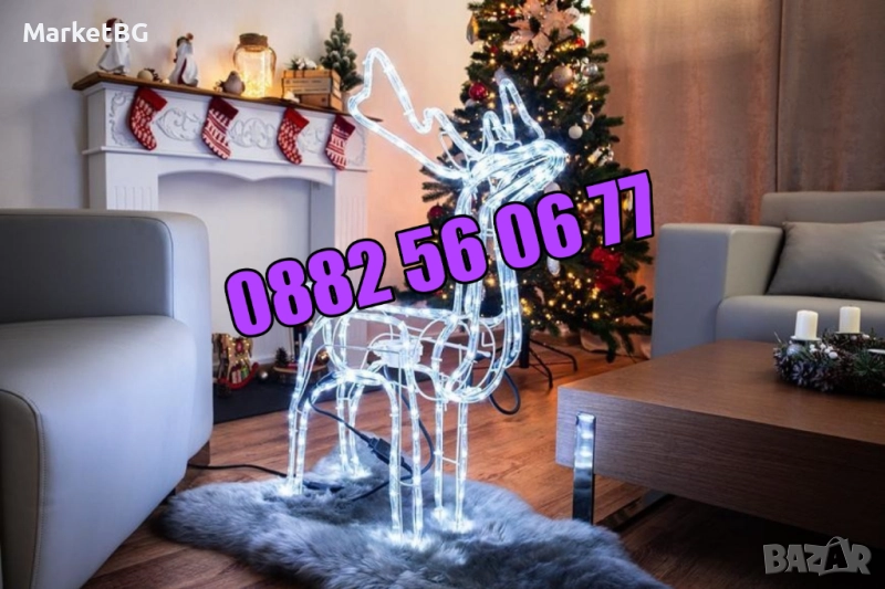 Светещият елен създава коледна атмосфера, където и да го поставите - до елхата, в градината или на балкона. Благодарение на високата степен на покритие, елените могат да бъдат поставени почти навсякъде. Светещият елен ще озари красиво интериора Ви, но можете да го поставите и на терасата или градината. Еленът е покрит със светещ кабел с студено бели светодиоди