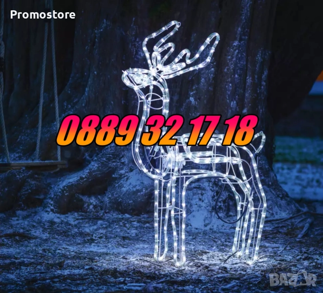 Светещият елен създава коледна атмосфера, където и да го поставите - до елхата, в градината или на балкона. Благодарение на високата степен на покритие, елените могат да бъдат поставени почти навсякъде. Светещият елен ще озари красиво интериора Ви, но можете да го поставите и на терасата или градината. Еленът е покрит със светещ кабел с студено бели светодиоди