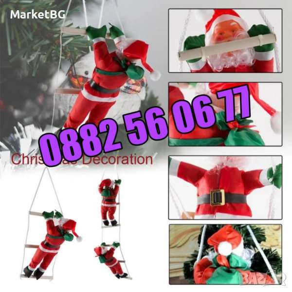 Катерещ се Дядо Коледа на стълба - чудесен коледен декор за дома. Коледна декорация подходяща за окачване на балкони и тераси. Играчката представлява кукла с форма на любимия старец Дядо Коледа, който се изкачва по стълба, за да донесе подаръци на децата.
