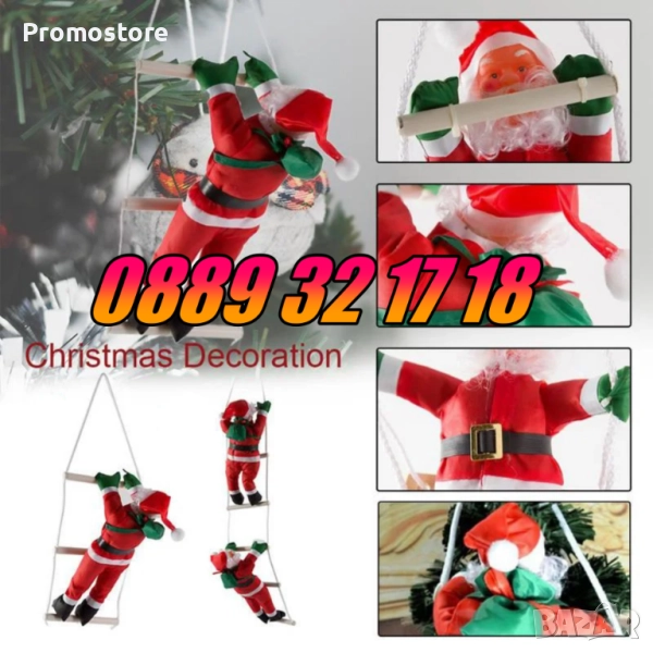 Катерещ се Дядо Коледа на стълба - чудесен коледен декор за дома. Коледна декорация подходяща за окачване на балкони и тераси. Играчката представлява кукла с форма на любимия старец Дядо Коледа, който се изкачва по стълба, за да донесе подаръци на децата.