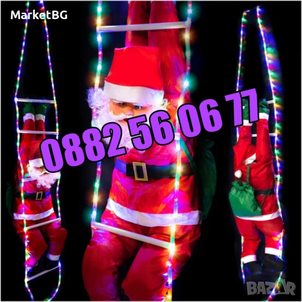 Дядо Коледа катерещ се по светеща стълба размер 60 см → Обява 52428151