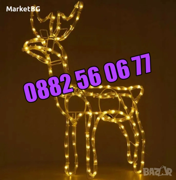 Светещият елен създава коледна атмосфера, където и да го поставите - до елхата, в градината или на балкона. Благодарение на високата степен на покритие, елените могат да бъдат поставени почти навсякъде. Светещият елен ще озари красиво интериора Ви, но можете да го поставите и на терасата или градината. Еленът е покрит със светещ кабел с студено бели, топло бели или сини светодиоди