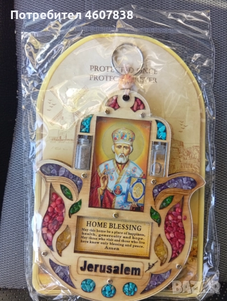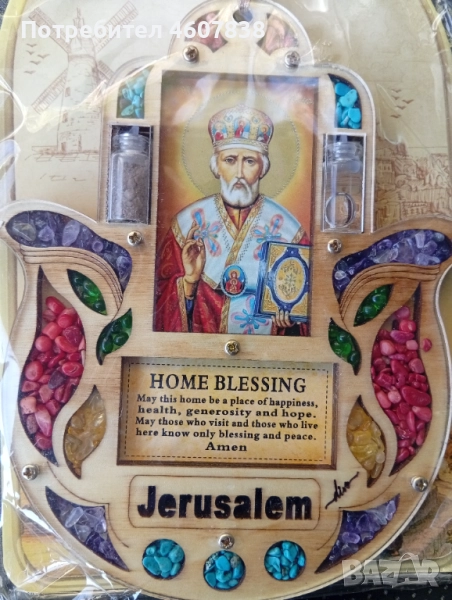 Амулет Хамза за благословия на дома.Светена вода, светена земя от Йерусалим.