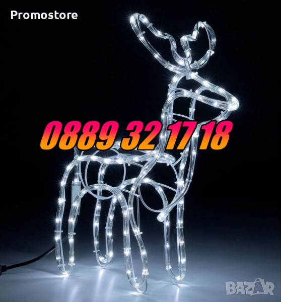 Светещият елен създава коледна атмосфера, където и да го поставите - до елхата, в градината или на балкона. Благодарение на високата степен на покритие, елените могат да бъдат поставени почти навсякъде. Светещият елен ще озари красиво интериора Ви, но можете да го поставите и на терасата или градината. Еленът е покрит със светещ кабел с студено бели, топло бели или сини светодиоди