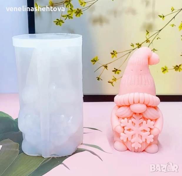 3D гном със снежинка силиконов молд форма свещи гипс сапун смола фондан шоколад → Обява 52428812