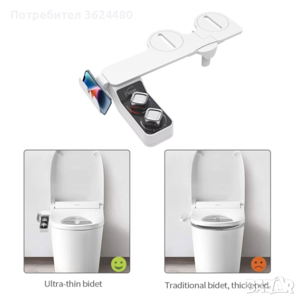 LUXURY Биде Приставка: Топла/Студена Вода и Стойка за Телефон за Максимален Комфорт