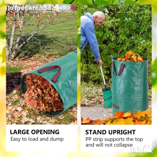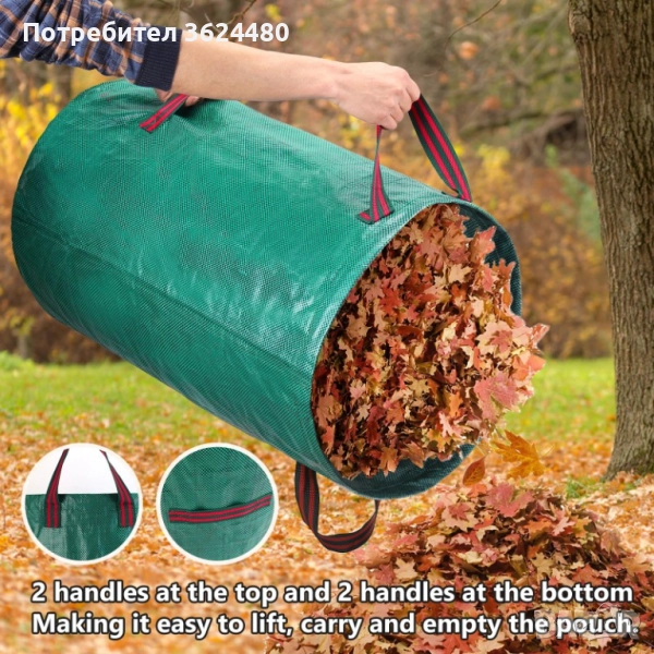 и е UV устойчива, което гарантира, че няма да се разкъса или повреди от слънцето. Тя е идеална за събиране на листа, окосена трева, клони, плевели и всякакви растителни отпадъци. Снабдена е със здрави дръжки за лесно пренасяне и изпразване.