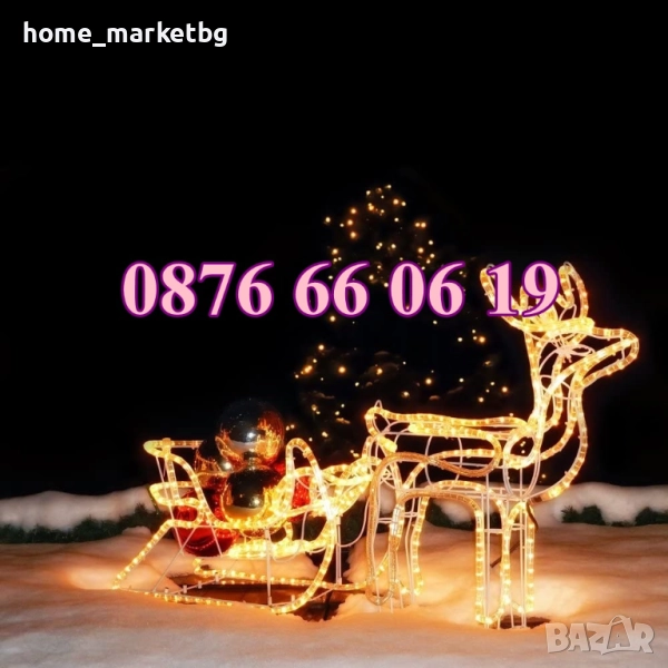 Светещ коледен елен с шейна, светещ елен, коледна украса, бяла светлина → Обява 52429395