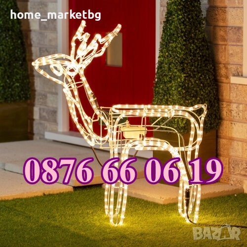 Светещият елен създава коледна атмосфера, където и да го поставите - до елхата, в градината или на балкона. Благодарение на високата степен на покритие, елените могат да бъдат поставени почти навсякъде. Светещият елен ще озари красиво интериора Ви, но можете да го поставите и на терасата или градината. Еленът е покрит със светещ кабел с студено бели светодиоди