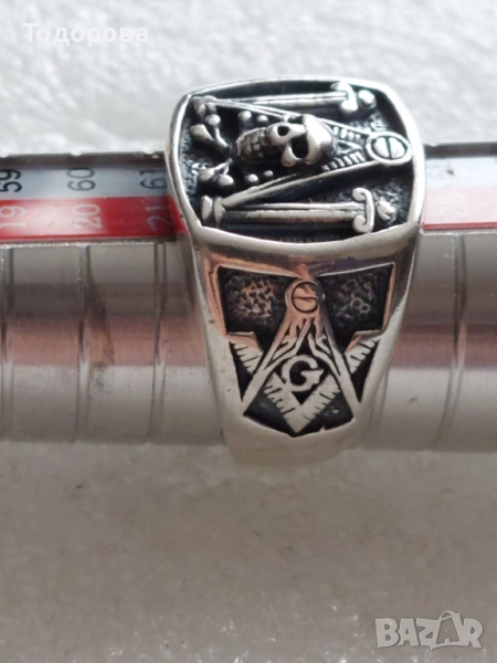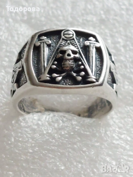 Много рядък,автентичен, сребърен масонски пръстен,сребро 925 → Обява 52429641