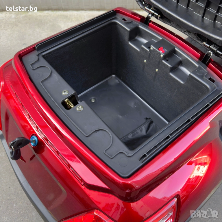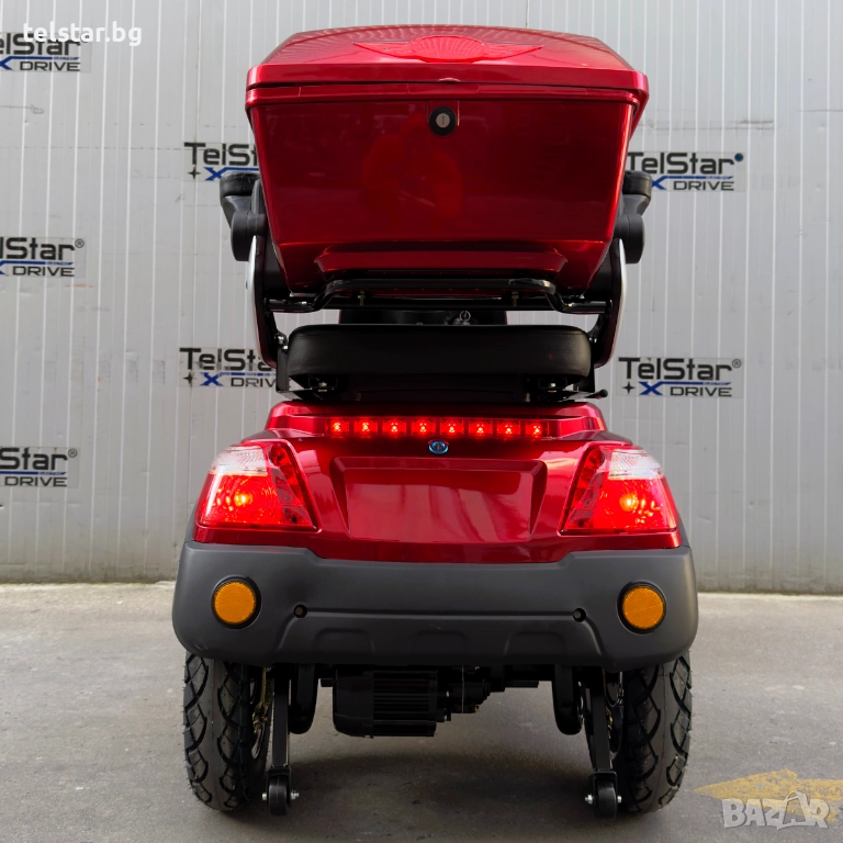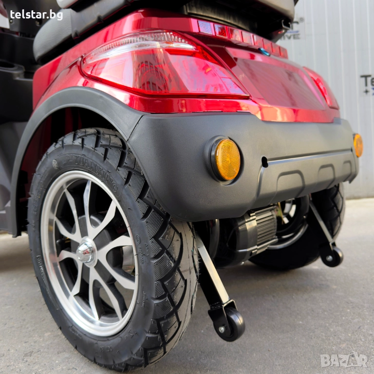 - Големи алуминиеви джанти - С 3 предни скорости + 1 задна - Двойна спирачна система: магнитна рекооперираща спирачка + предна дискова + задни барабанни спирачки - голям светещ LCD екран с показания за скорост, ниво на батерия, изминато разстояние, светлини и др. - предни и задни амортисьори - голямо задно багажно отделение - повдигаеми подлакътници - Първоначално зареждане на батерията: 6 - 8 часа - Максимален ъгъл на изкачване: 18° - зарядно устройство включено в комплекта