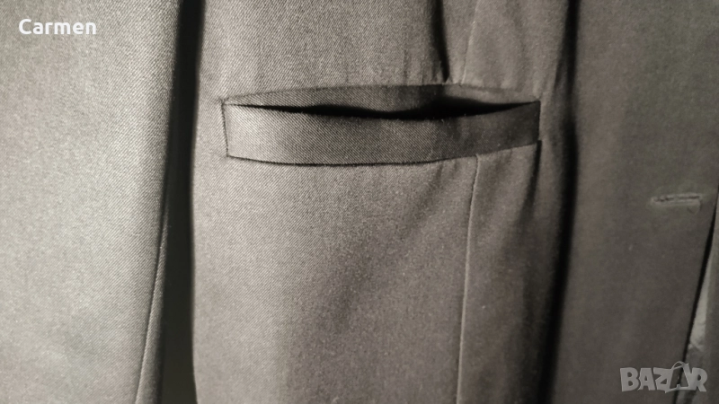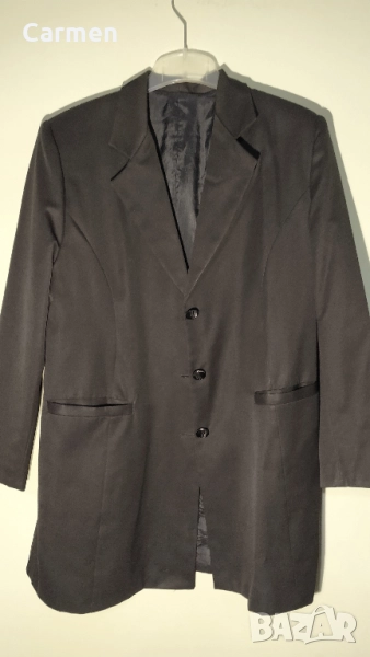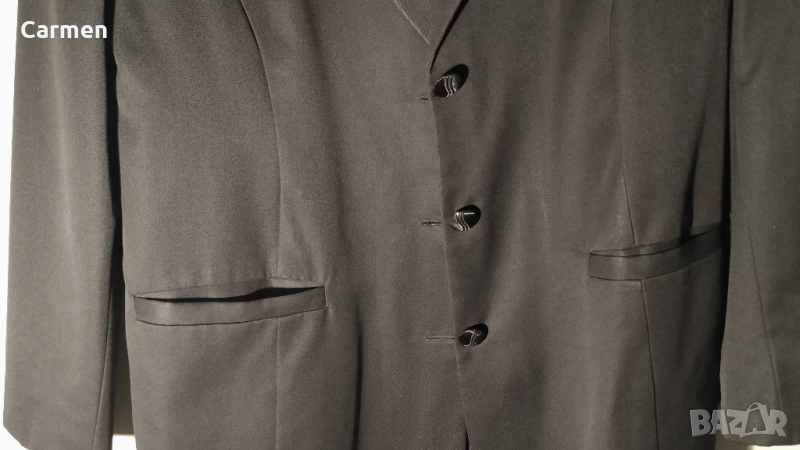 Предлагам черно елегантно сако, което по мое мнение е унисекс, тъй като и размера е по-голям. Купувано е преди доста години, но видимо сакото е в отлично състояние, без забележки. Подходящо в съчетание с различен цвят и тип дрехи, заради черната си изчистена визия. Материята е приятна на усещане и подходяща за различни сезони. Продавам го тъй като стои отдавна в гардероба и не се носи. Закупено преди години за много по-висока от посочената цена, но просто не ми е нужно.