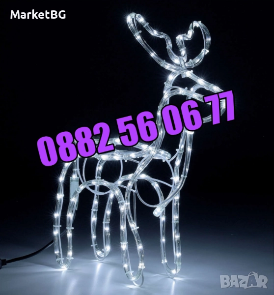 Светещият елен създава коледна атмосфера, където и да го поставите - до елхата, в градината или на балкона. Благодарение на високата степен на покритие, елените могат да бъдат поставени почти навсякъде. Светещият елен ще озари красиво интериора Ви, но можете да го поставите и на терасата или градината. Еленът е покрит със светещ кабел с студено бели, топло бели или сини светодиоди