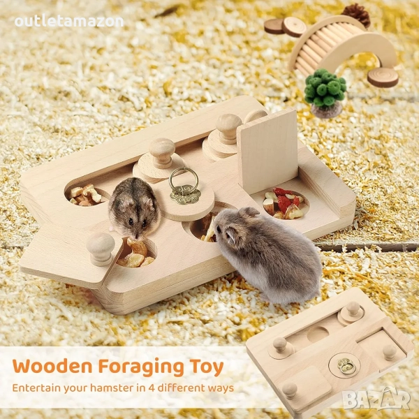 Универсален интерактивен пъзел за търсене на храна】Изработен с четири уникални дизайна на корита, този интерактивен пъзел за търсене на храна ангажира естествените инстинкти на вашия хамстер. Капаците могат да се манипулират чрез различни движения, като плъзгане, повдигане, завъртане и преместване, превръщайки времето за лакомство във вълнуващо приключение. 【Подобряване на физическото и психическото благополучие】Отглеждането на хамстери в мрачна среда може да бъде вредно за тяхното физическо и психическо здраве. Нашата играчка за обогатяване 4 в 1 предлага идеално решение, като осигурява разнообразни стимули, които се борят със скуката, повишават физическата активност и в крайна сметка насърчават по-доброто благополучие. 【Безопасна естествена букова дървесина】Изработена от фино полирана естествена букова дървесина, нашата играчка за търсене на храна е напълно без грапавини, неприятни миризми или каквито и да било вредни вещества, което гарантира, че е безопасна за вашия домашен любимец. Естественият дървесен оттенък добавя и очарователен щрих, който безпроблемно се слива с всяка клетка.