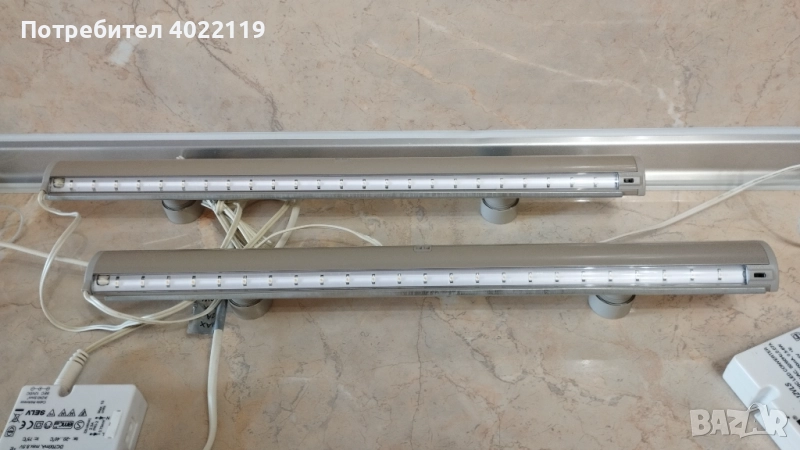 Два броя LED лампи с датчик/сензор за движение, купувани от IKEA (ИКЕА) Англия. Икономични осветителни тела, подходящи за осветяване на различни помещения в дома, също и за гардероби, чекмеджета, гаражи и т.н. Дължина 42 см, с 24 светодиода всяка. Лампите са комплект с конверторите и кабелите, почти неизползвани, нямат забележки. Цената е за двете общо и е без коментар!