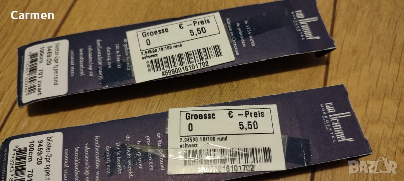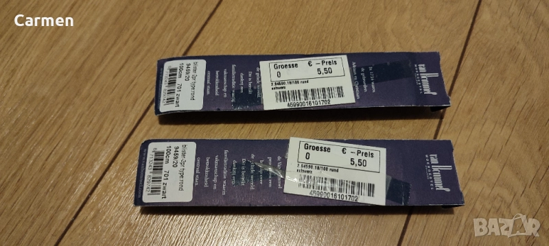 Нови връзки за обувки на холандската марка Van Bommel. Връзките са внесени от Германия, където са закупени за 11 евро. Изключително качествена и здрава изработка. Взех ги за себе си, но така и не влязаха в употреба.