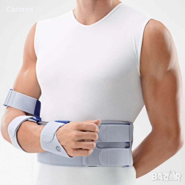 По този начин OmoLoc предотвратява болезнените движения и премахва тежестта на ръката от рамото. Благодарение на лесния за използване дизайн не е необходима презрамка! Това Ви пречи да заемете поза, за да облекчите болката, както и напрежението в здравото рамо и врата. Гъвкавото управление на трите примки за ръце ви позволява да започнете нежна физиотерапия на ранен етап.