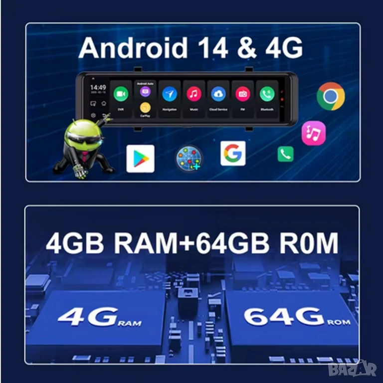 Перфектна работа с безжични Carplay и AndroidAuto и като автомобилен видеорегистратор!