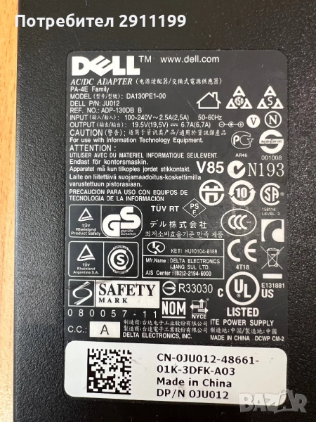 19,5V / 6,7A Отлично работещо зарядно за лаптоп.