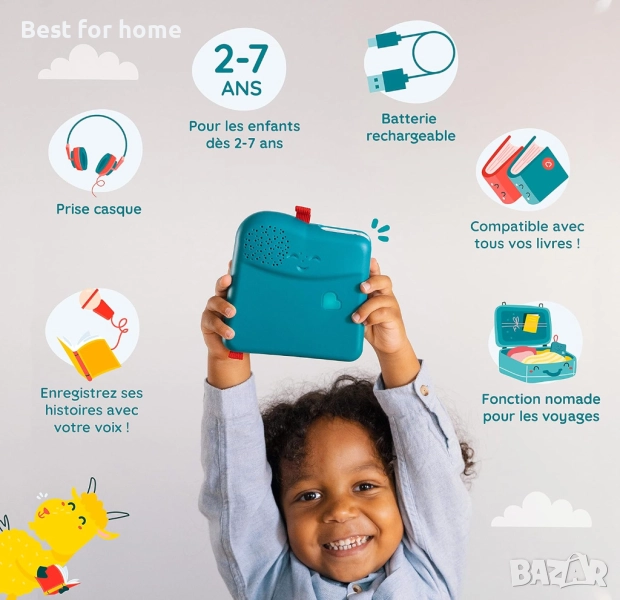 ЧЕТЕЦ НА ВЪЛШЕБНИ КНИГИ Запазете любимите си истории с гласа си в Bookinou. След това, с книгата в ръка и вашият глас, който го насочва, то се учи от 2-годишна възраст да обича четенето, съвсем само като голямо дете!