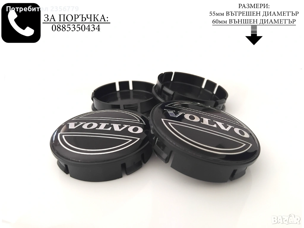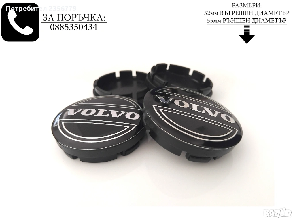 Капачки за джанти Волво черни декоративни тапи за джанти 52/55 → Обява 52430516