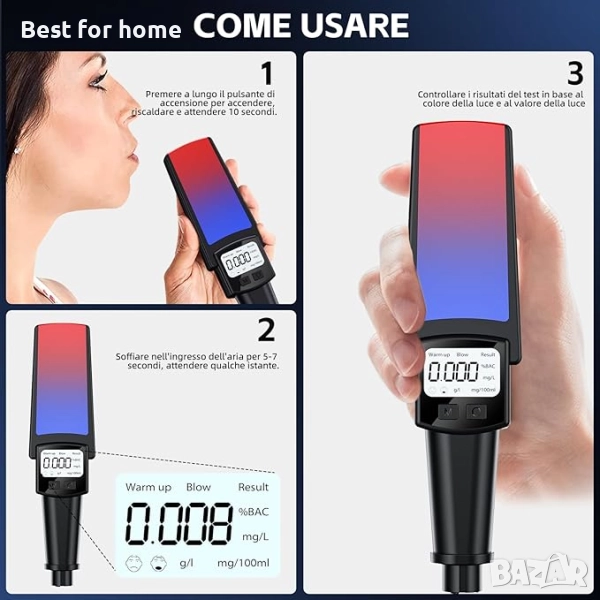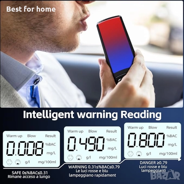 【Лесна и интуитивна употреба】Просто включете дрегера, изчакайте 15 секунди за предварително загряване и духнете 5 секунди. Резултатът се показва само за 3 секунди на ясен LCD екран с подсветка. Целият процес е лесен дори за начинаещи потребители.