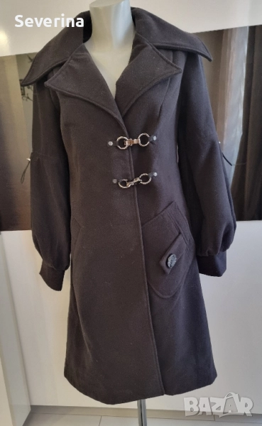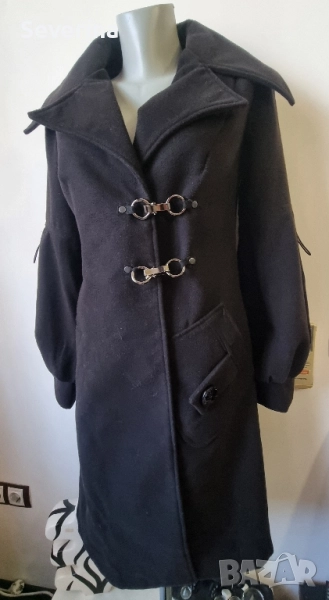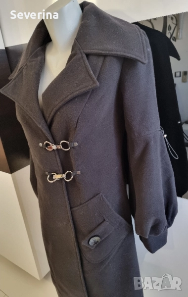 Уникален дизайн, ново наситено черно палто → Обява 52430863