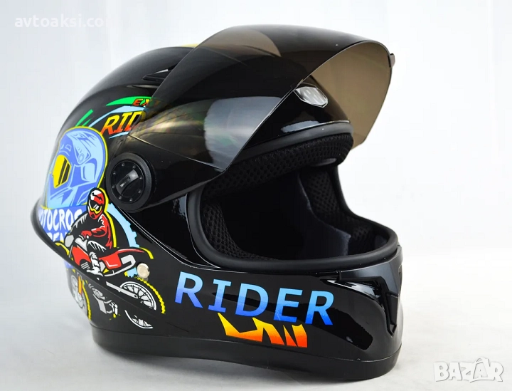 Детската мото каска предлага отлична защита и стил, като осигурява комфорт и сигурност при всяко каране.