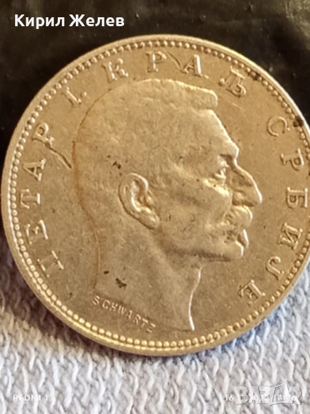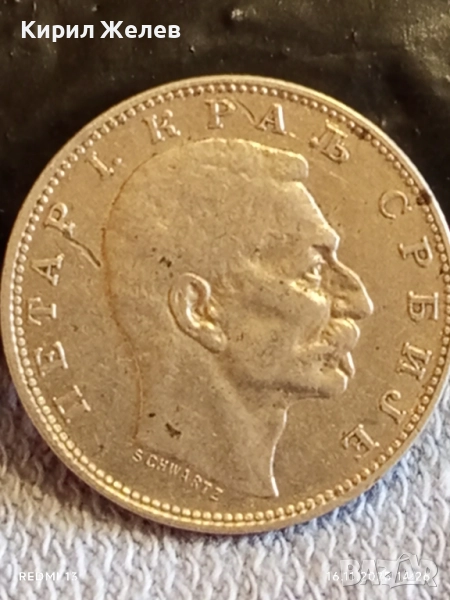 Сребърна монета 1 динар 1912г. Кралство Сърбия Крал Петър първи за КОЛЕКЦИЯ 42897 → Обява 52431186