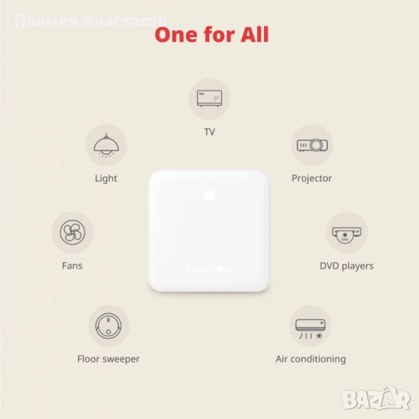 Автоматизация и Сцени: Позволява създаването на автоматизирани сцени, които синхронизират работата на всички SwitchBot устройства (напр. Сензорът за движение засича присъствие и Hub Mini включва климатика).