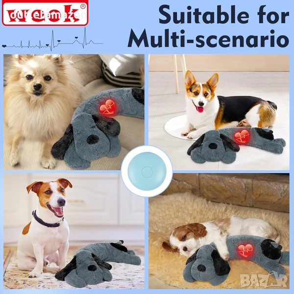 Играчката за кученца WEOK с пулс, която симулира истинския пулсиращ сърдечен ритъм, позволява на кученцето да почувства комфорт. Тя може да помогне на кученцата и котките да облекчат тревожността от раздяла, самотата, да преминат през трудния период и да се адаптират към новия дом или друга сложна среда. Важни съвети за устройството за пулс: Натиснете и задръжте превключвателя достатъчно дълго, той работи; Натиснете и задръжте превключвателя достатъчно дълго, той спира.