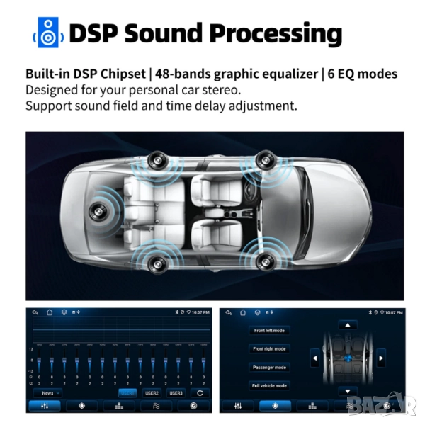 5. Настройки на звука според личните ви предпочитания посредством графичен еквалайзер - аналогов саунд процесор и изместване на звуковия фокус. Поп, рок, джаз, класика, плосък, потребител, глас - множеството опции за персонализиране ви позволяват да адаптирате аудио изживяването по ваш вкус.