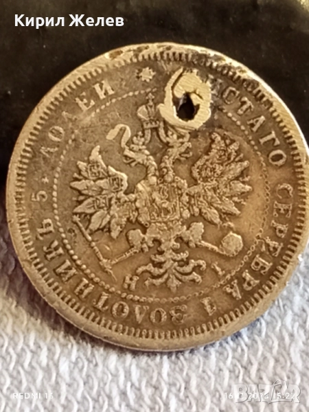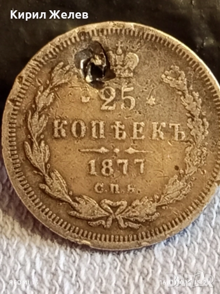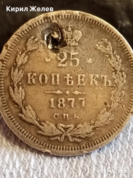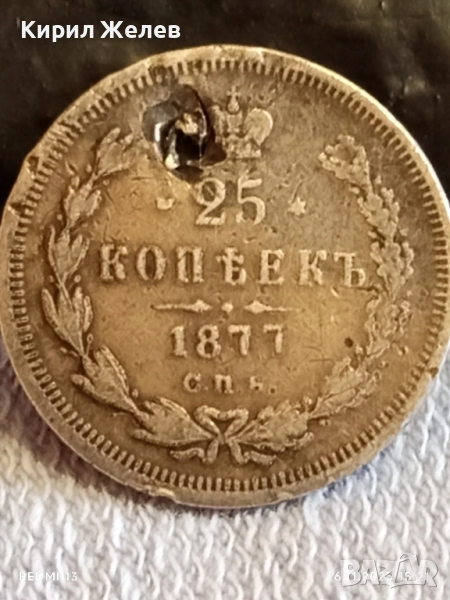 Сребърна монета 25 копейки 1877г. Царска Русия рядка за КОЛЕКЦИЯ 52269 → Обява 52431748