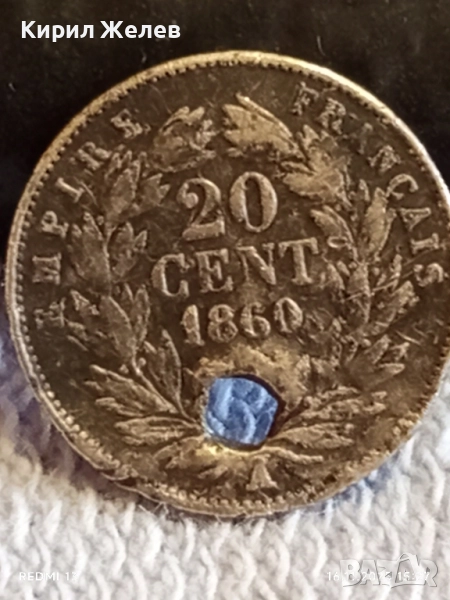 Сребърна монета 20 цента 1860г. Франция Император Наполеон трети за КОЛЕКЦИЯ 52244 → Обява 52431795